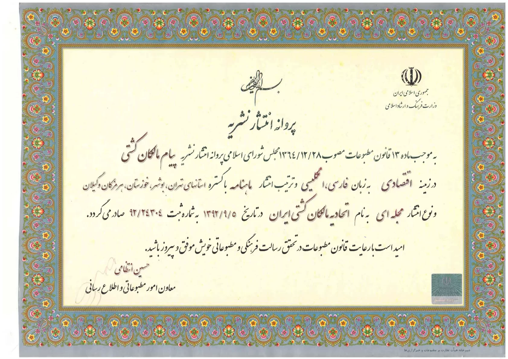 افزایش اعتبار پرچم ایران: تلاش برای ارتقاء وضعیت ناوگان و افزایش اعتبار پرچم رسمی کشور.